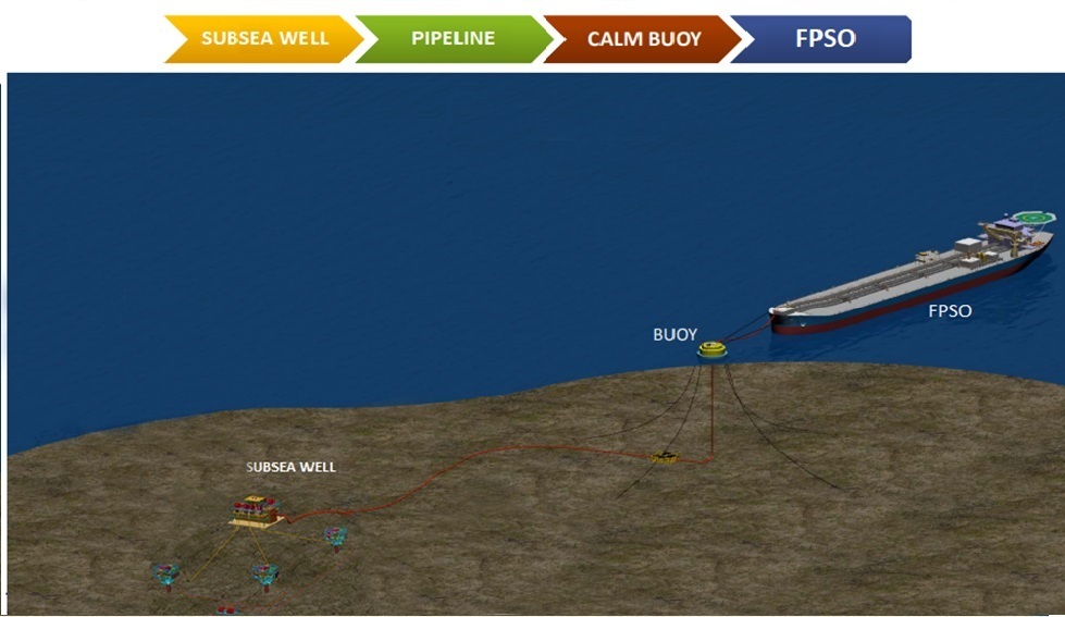 The connections include a pipeline from Subsea well to BUOY and BUOY to FPSO