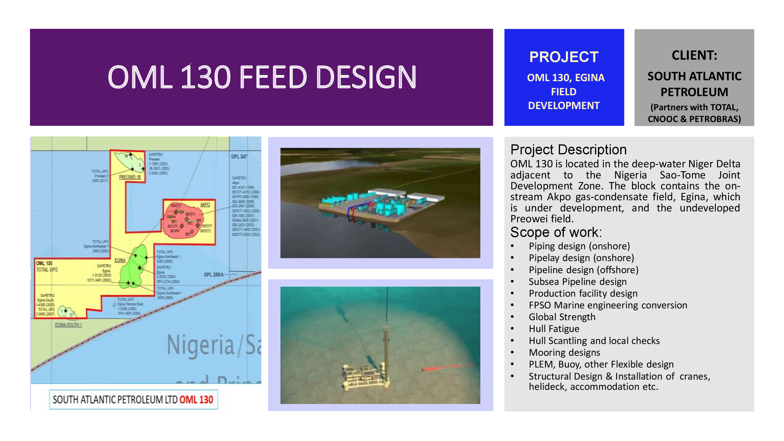 Design Studies of Platforms, Rigid and Flexible Pipelines PLEM, and FPSO
