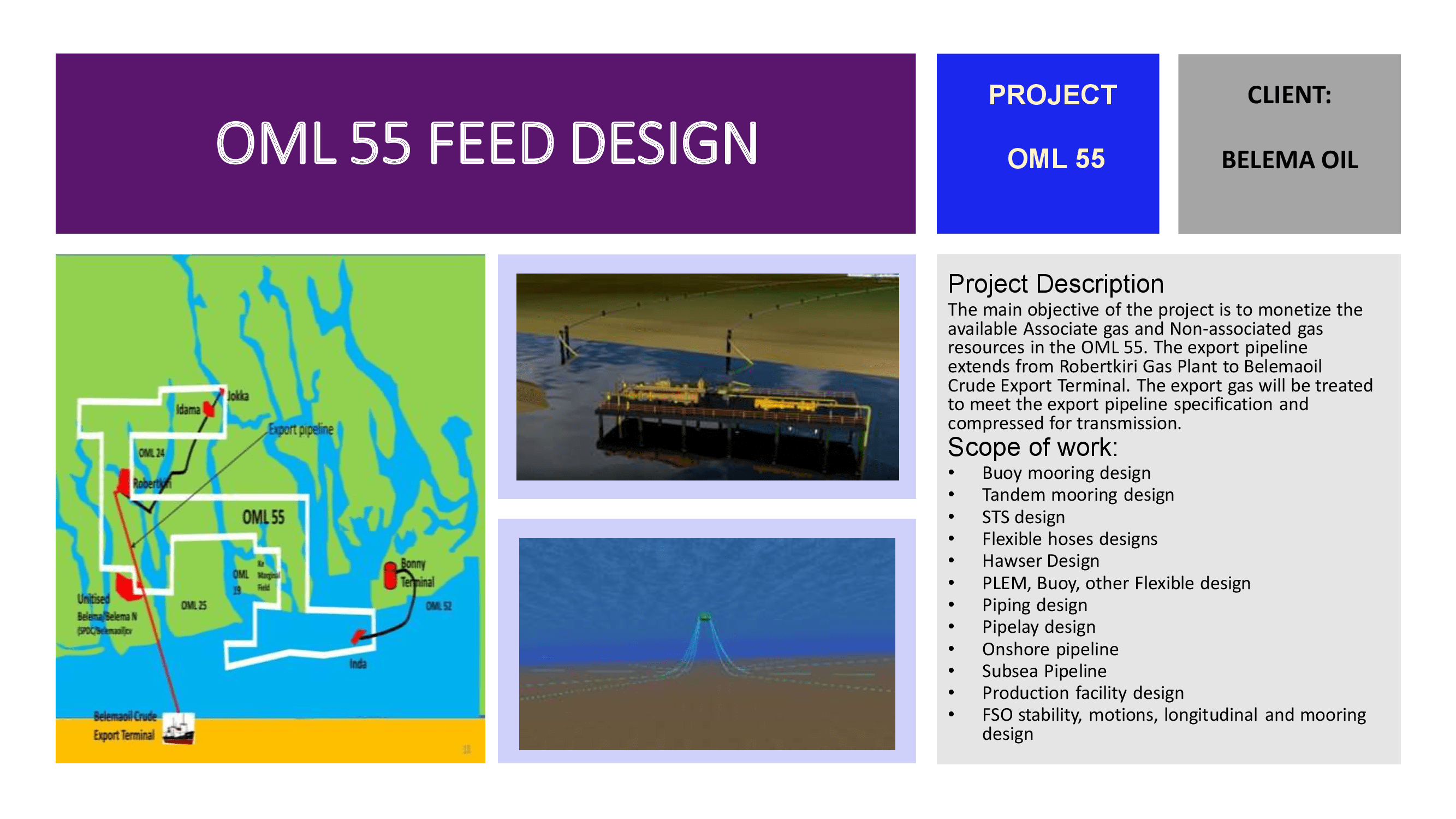 Design Studies of Rigid and Flexible Pipelines BUOY, and FPSO